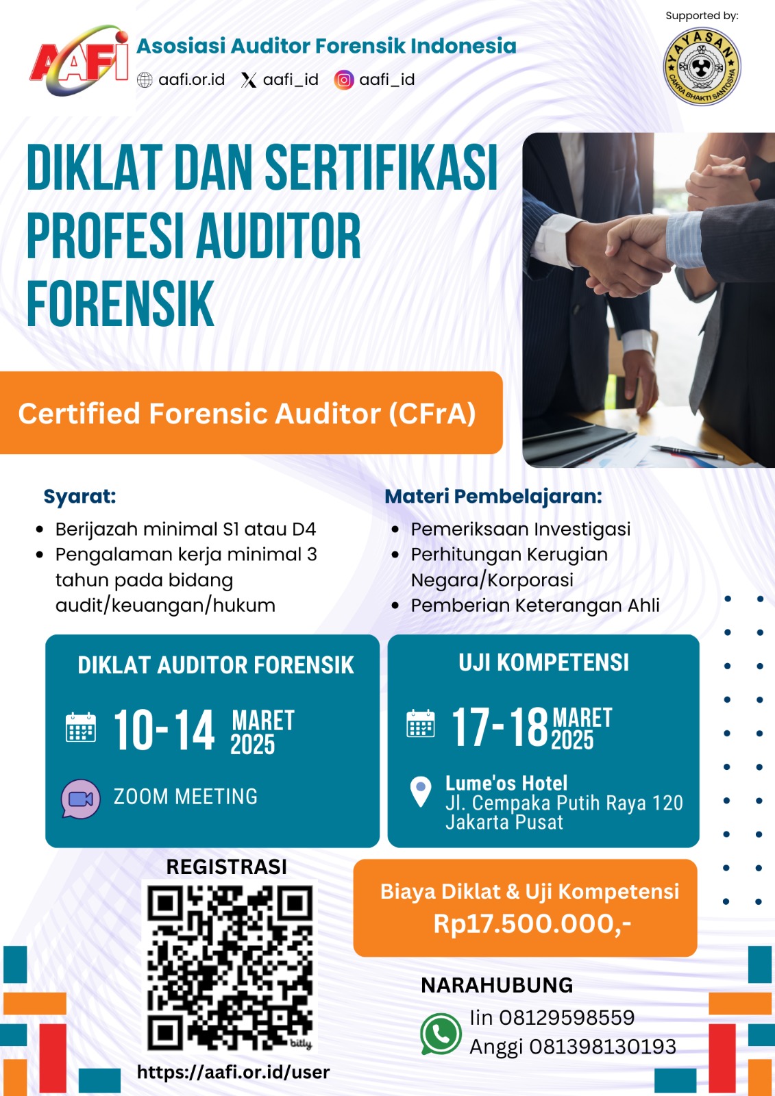 1 Mar 2025 AAFI YUDIMBA Gelar Diklat dan Sertifikasi Profesi Auditor Forensik (CFrA) 2025 Admin Nasional Posting at 1 Maret 2025