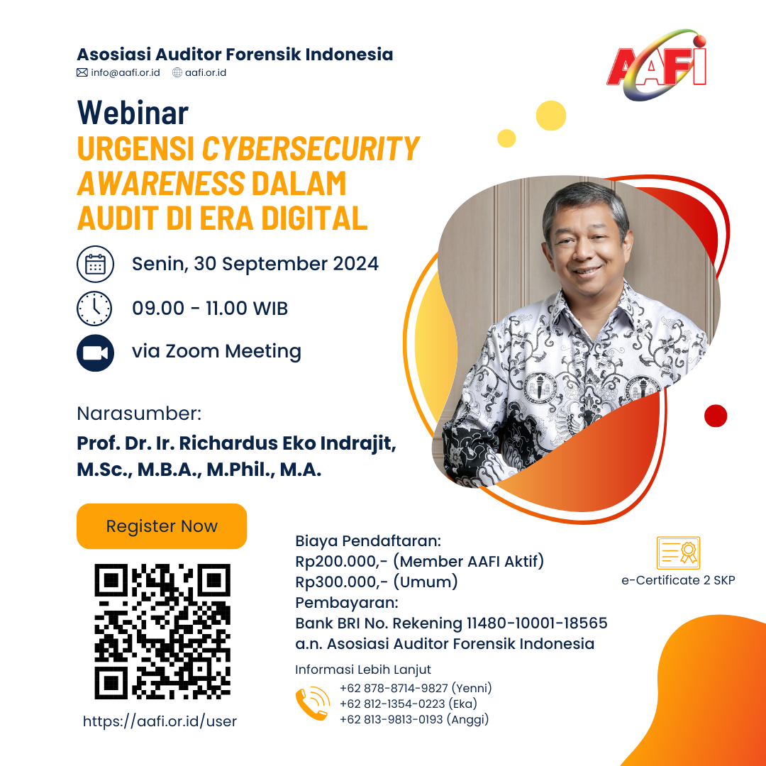 Asosiasi Auditor Forensik Indonesia Yudimba (AAFI YUDIMBA) mengundang Bapak/Ibu dalam Webinar Online dengan Tema: Urgensi Cybersecurity Awareness dalam Audit di Era Digital